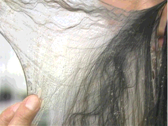 | 水中に入れると繊維一本一本が広がります。 |