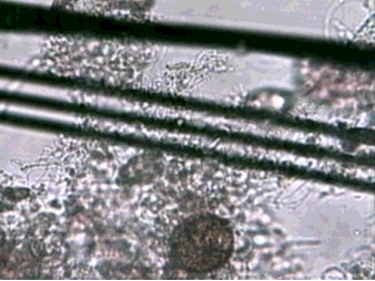 顕微鏡でみると微生物が確認できます。 |