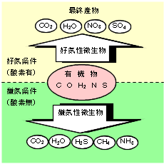 | 好気・嫌気条件下の有機物分解 | 生物膜による有機物分解 |