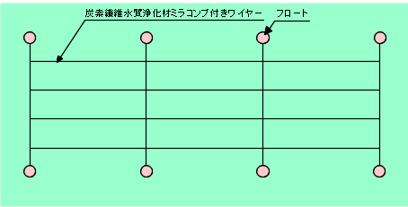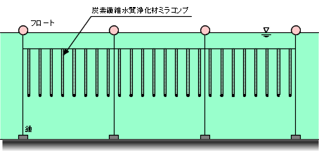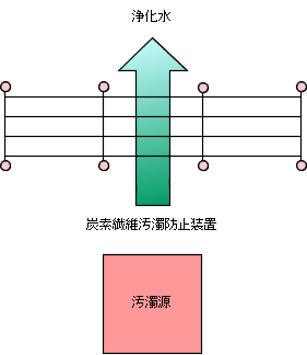 | 特定の水質汚濁発生源に対して、あるいは特定の施設に対する汚濁防止対策として、炭素繊維汚濁防止装置を汚濁源との間に設置することにより海洋汚濁防止を図ります。 |