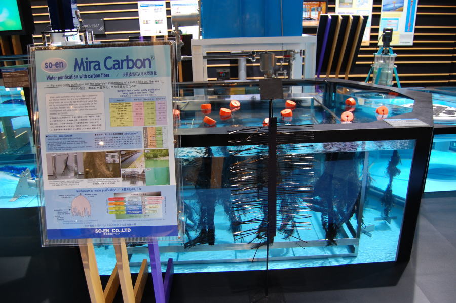 この「JAPAN EXPERIENCE」内JETROブースでは日本の優れた水質浄化技術として、CFMA炭素繊維水利用工法研究会認定の『ミラカーボン』が紹介されました。